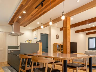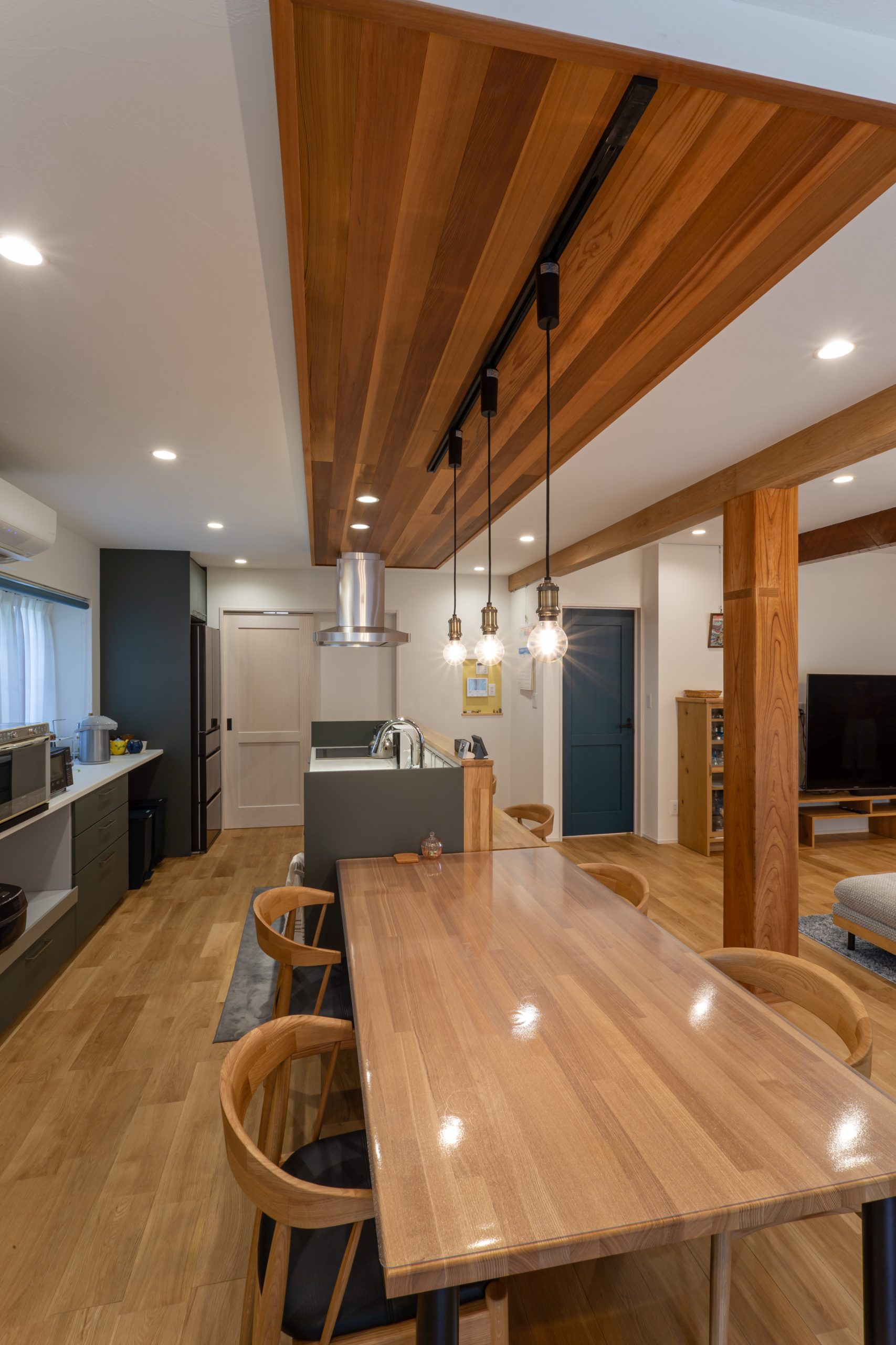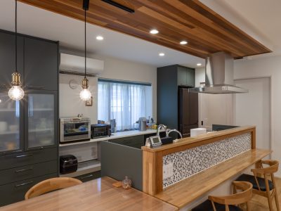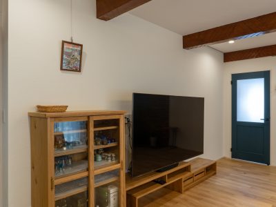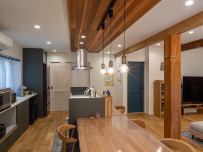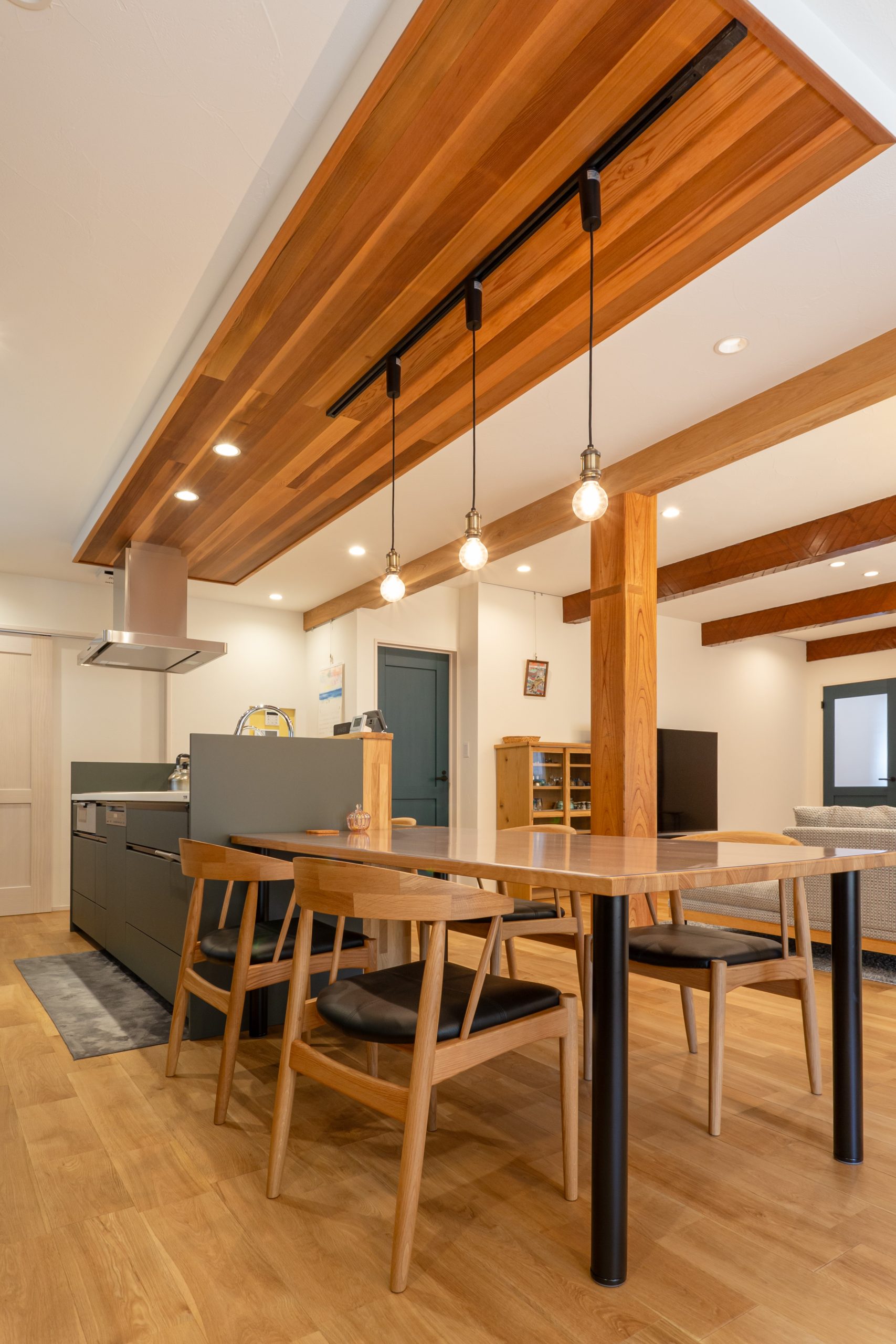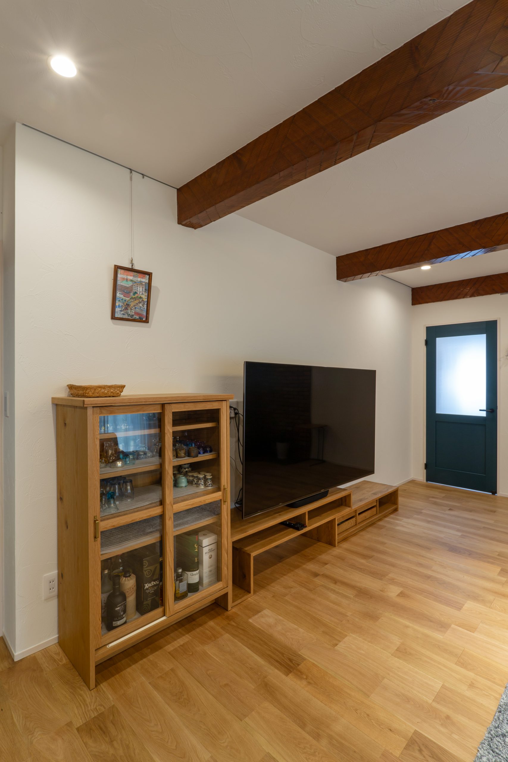 戸建てフルリフォーム レイアウト変更で一体感が生まれた全面フルリフォーム 一体感が生まれたLDK。広々と使いやすい間取りに生まれ変わりました。 【リビング】レイアウトを変更し、一直線にLDKを配置したことで広々とした印象に。 Before After 【ダイニング/キッチン】対面キッチンにはカウンターと同じ高さの造作テーブルを設置。コーナーにも造作デスクを儲け、用途に合わせて使えます。 Before After 【和室】和室から洋室へ変更。造作家具や棚で統一感のあるスペースに。 Before After 【玄関ホール】階段幅が広くなりより使いやすくなりました。 Before After 【トイレ】元の木目壁を生かし、色を塗り替え明るい印象のトイレに。 Before After 完成ギャラリー