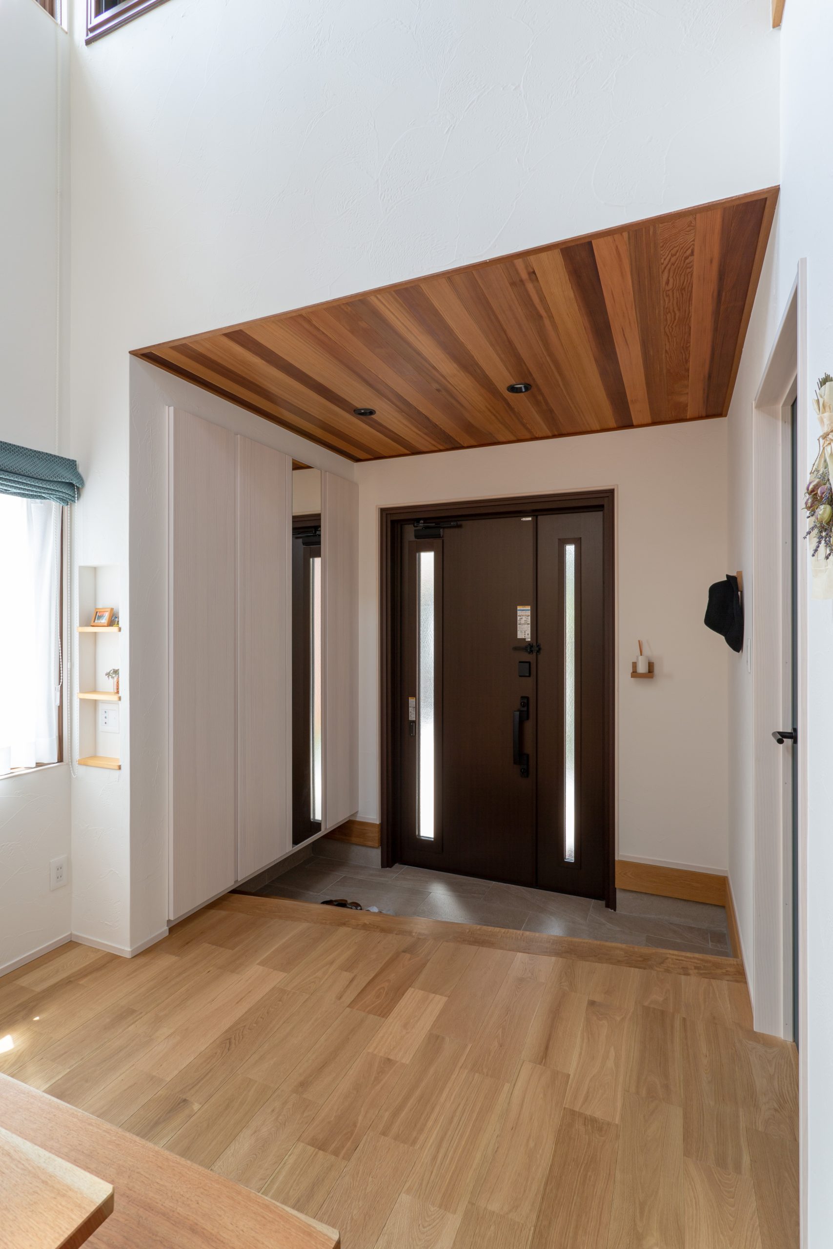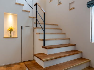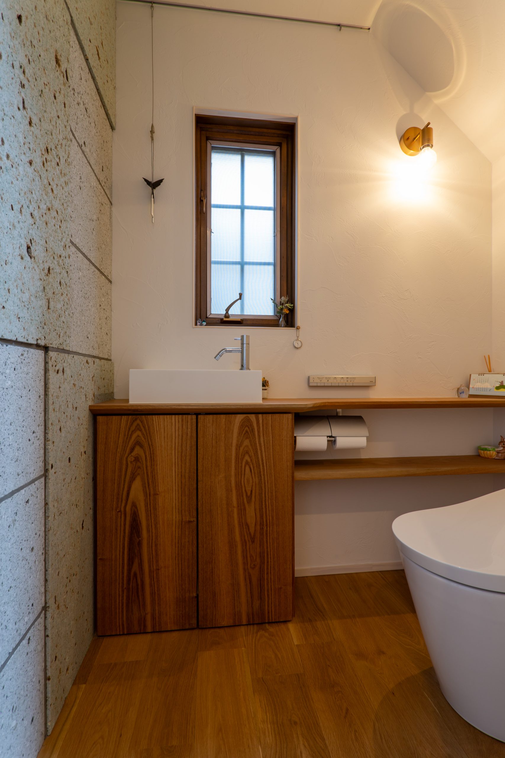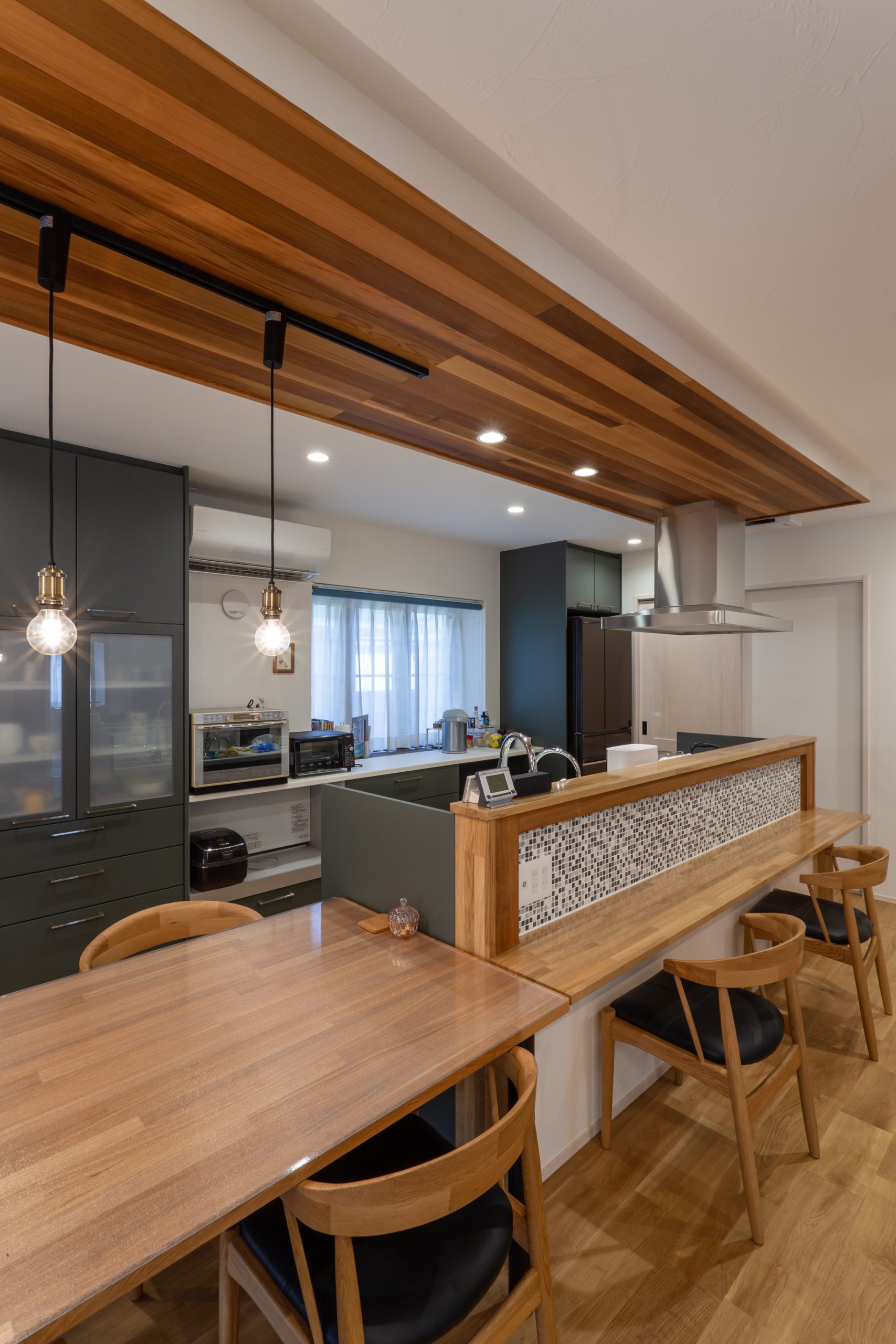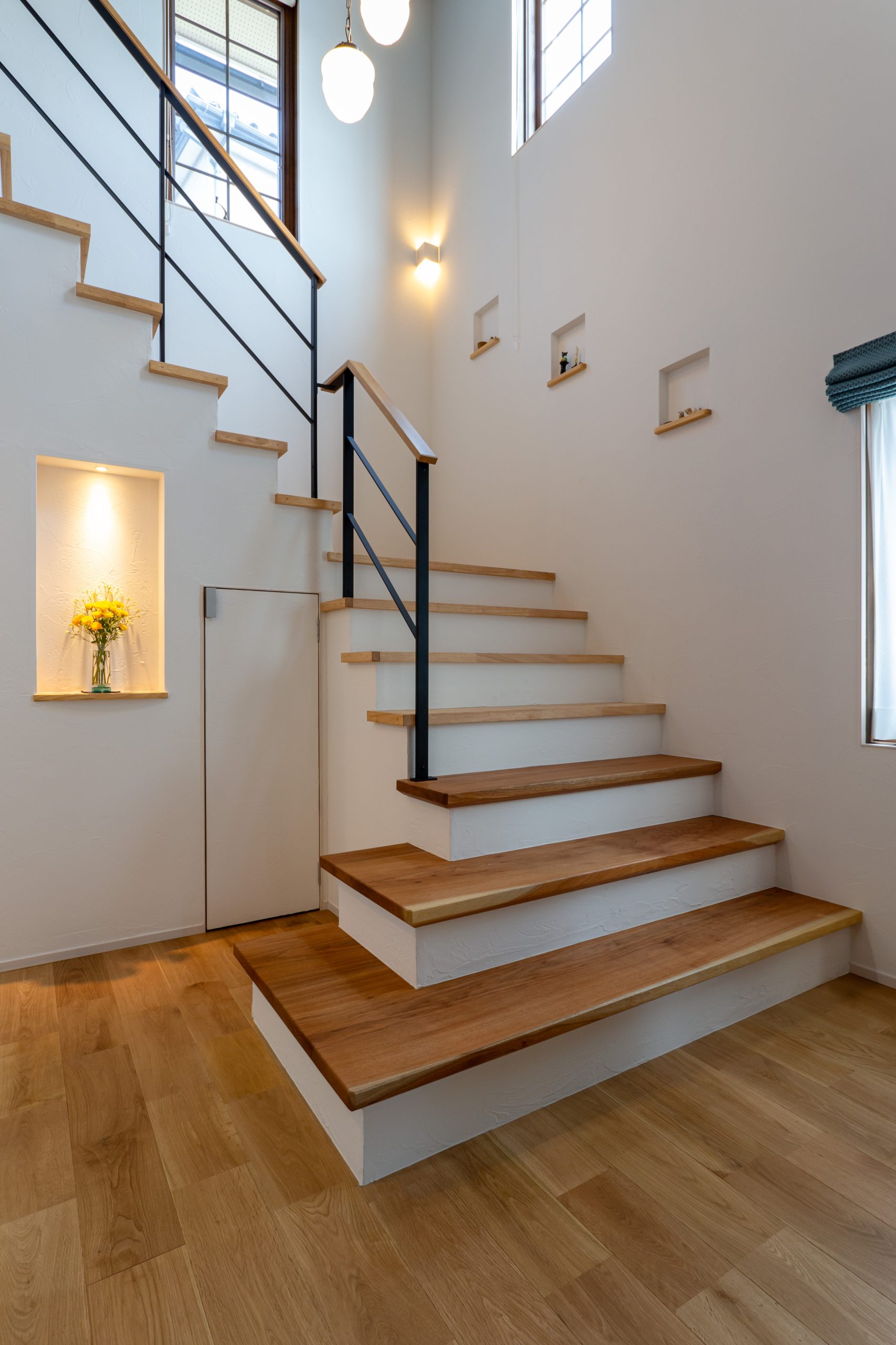 戸建てフルリフォーム レイアウト変更で一体感が生まれた全面フルリフォーム 一体感が生まれたLDK。広々と使いやすい間取りに生まれ変わりました。 【リビング】レイアウトを変更し、一直線にLDKを配置したことで広々とした印象に。 Before After 【ダイニング/キッチン】対面キッチンにはカウンターと同じ高さの造作テーブルを設置。コーナーにも造作デスクを儲け、用途に合わせて使えます。 Before After 【和室】和室から洋室へ変更。造作家具や棚で統一感のあるスペースに。 Before After 【玄関ホール】階段幅が広くなりより使いやすくなりました。 Before After 【トイレ】元の木目壁を生かし、色を塗り替え明るい印象のトイレに。 Before After 完成ギャラリー