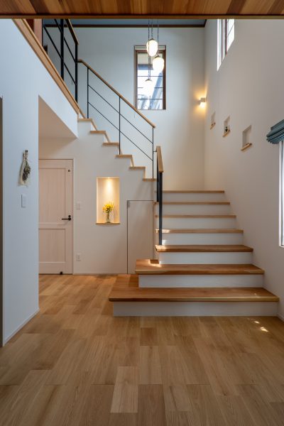 二階建ては2階にプライベートを集約すると整えやすい。