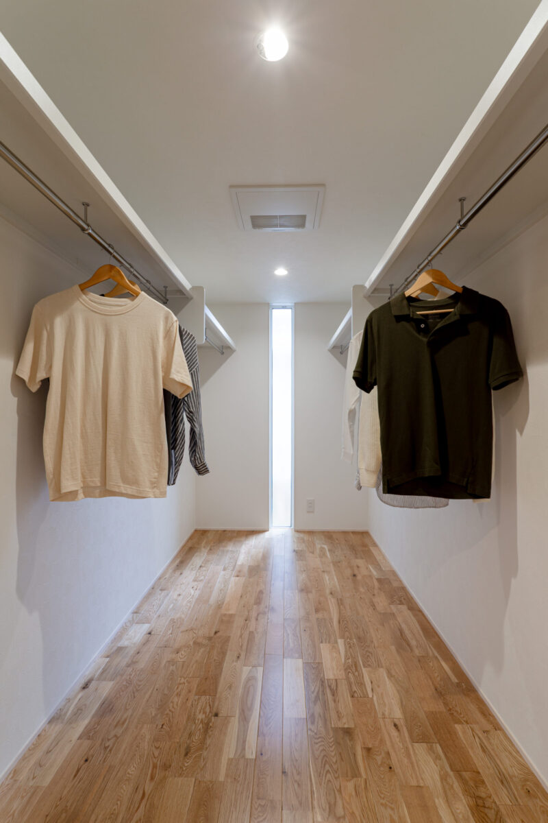 存在感のある梁が空間のアクセントとなり、木の魅力を存分に感じられるLDK。視線が自然と上へ導く構えが、開放感と居心地のよさを引き立てます。