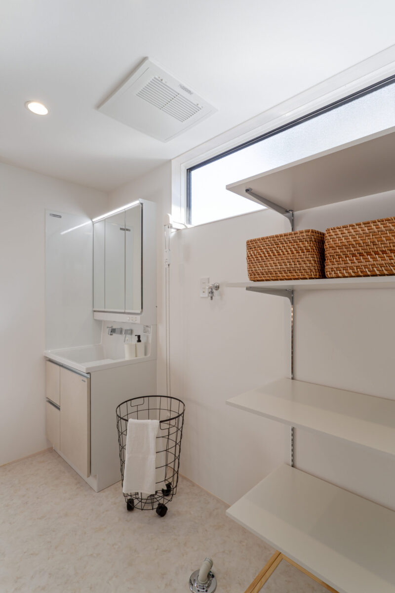 白を基調とした明るく清潔感のある脱衣室